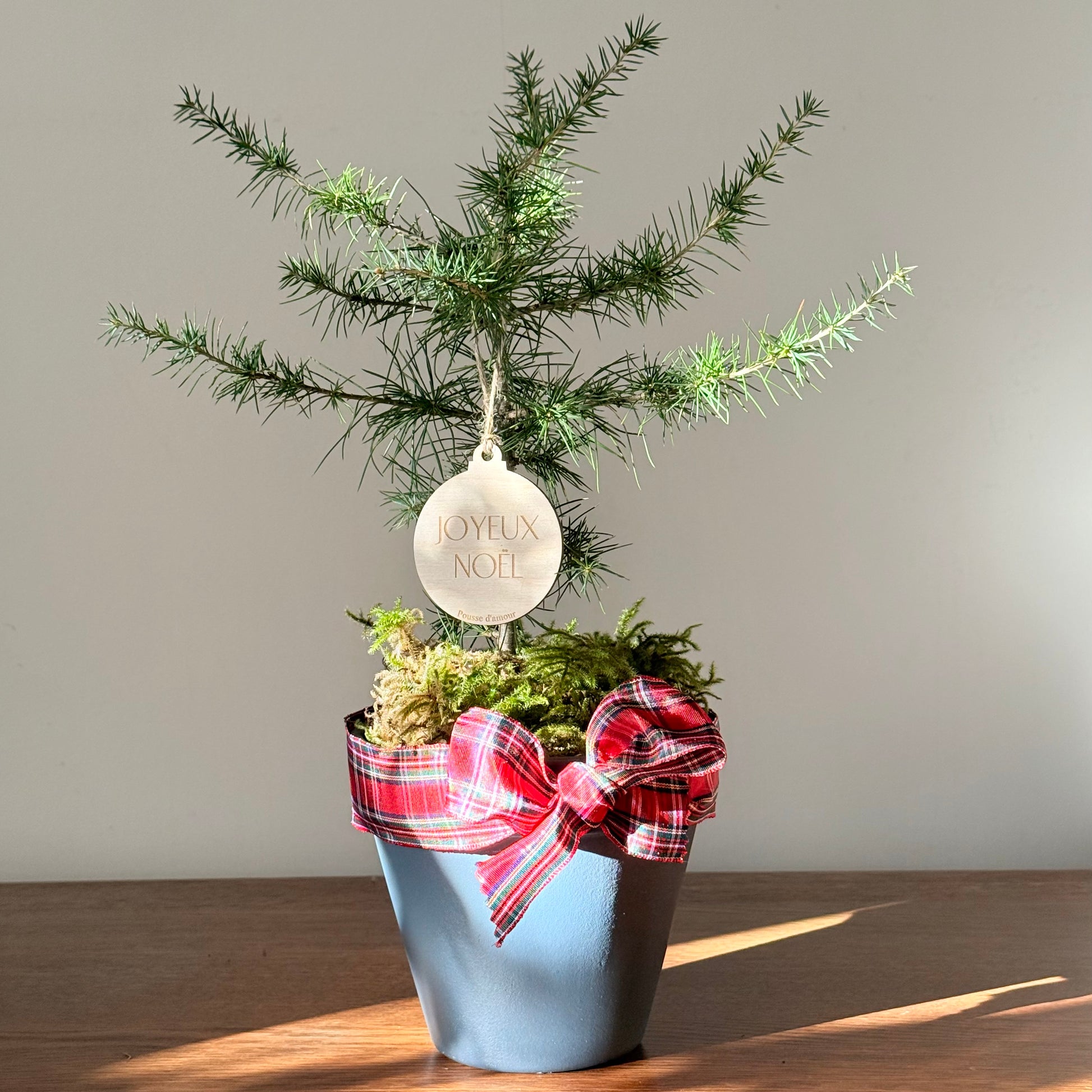 – un jeune cèdre de l'Atlas dans un pot en terre cuite,